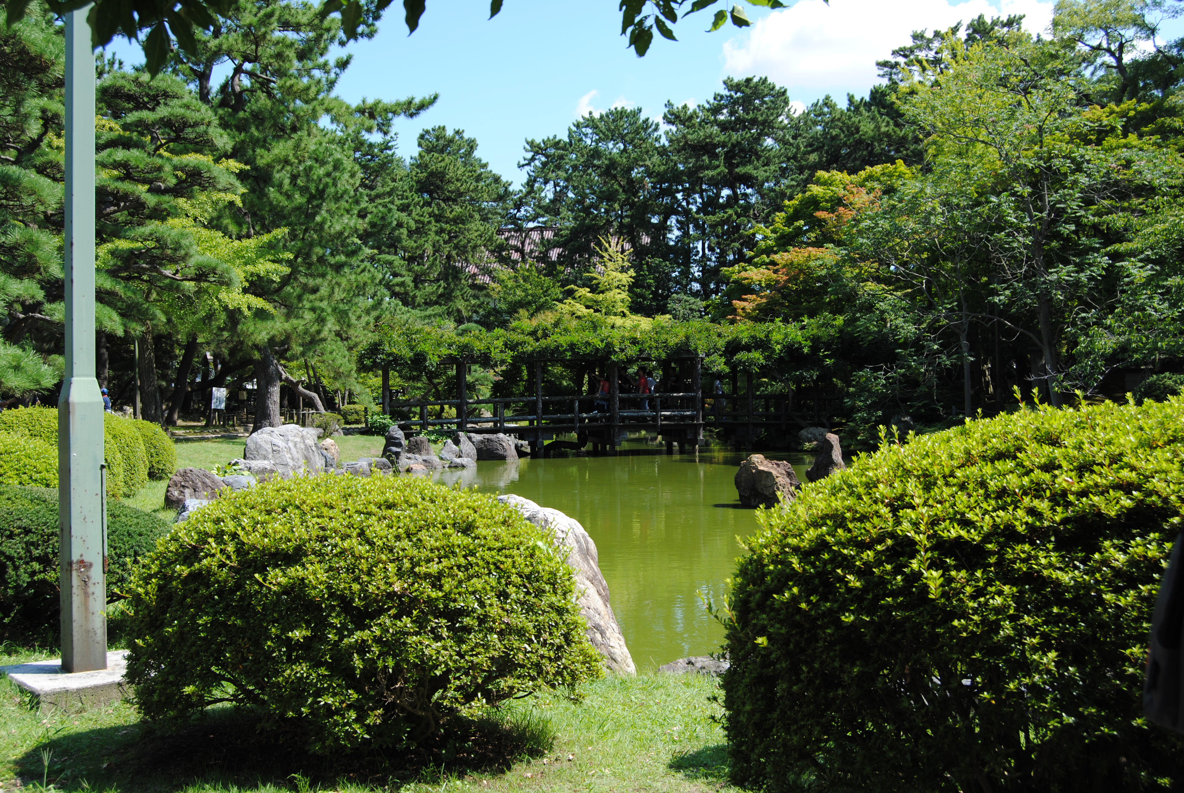Das schöne Wetter und der Fluss machte uns Lust auf Wandeln in einem nahegelegenen Park, der um den Hakusen Schrein angelegt ist. Nachdem wir auch nicht mehr viel Zeit bis zum Konzert hatten, und die Halle direkt hinter dem Park gelegen ist, haben wir uns dort einmal umgesehen. Ein bisschen fühlt es sich an, alsob man in eine andere Welt eintauchen würde und dem Industrie-Großstadt-Flair entfliehen kann.