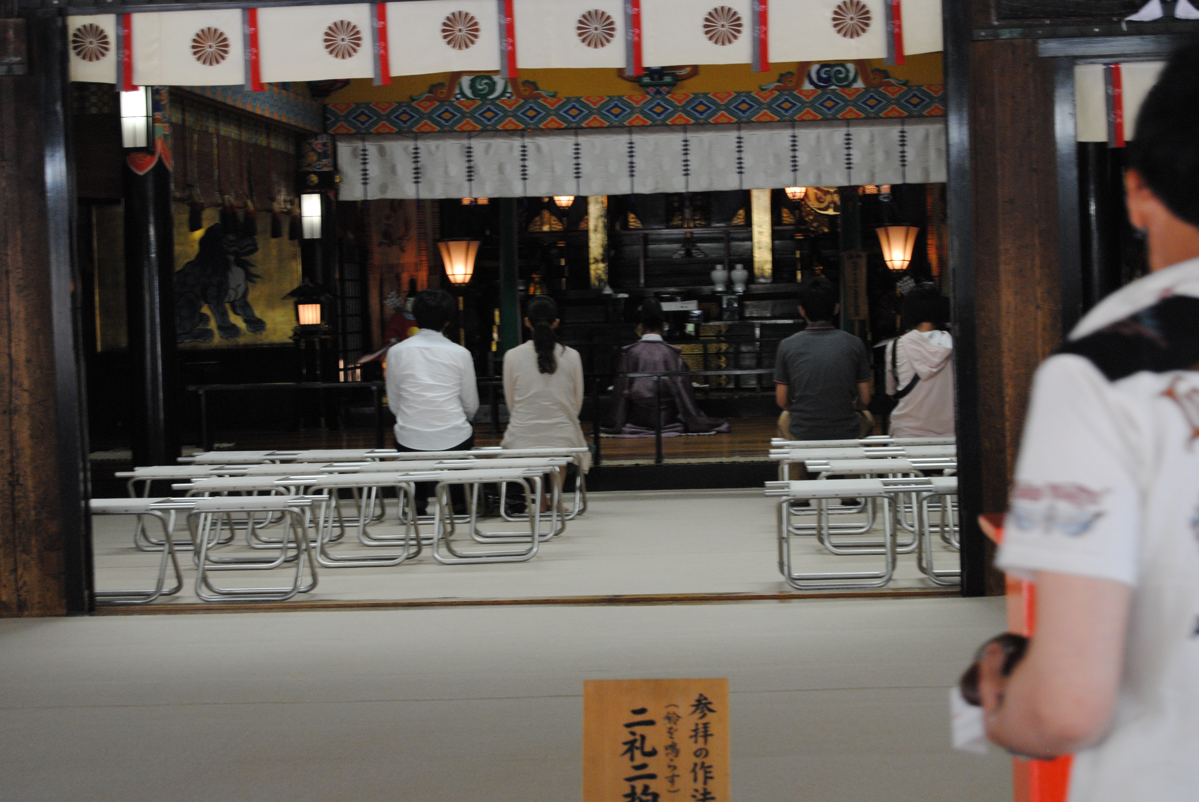 Im Schrein wurde gerade eine Messe gehalten (sagt man hier auch Messe, ich weiß es nicht…) Seltsames Schuhwerk inbegriffen.