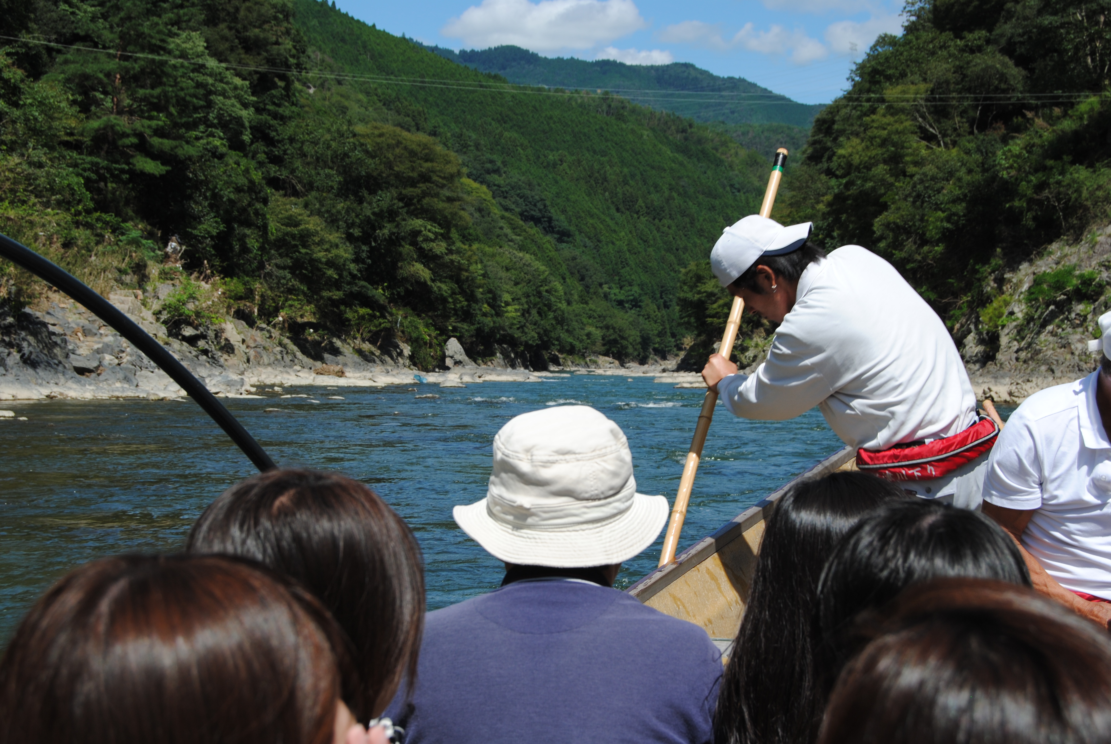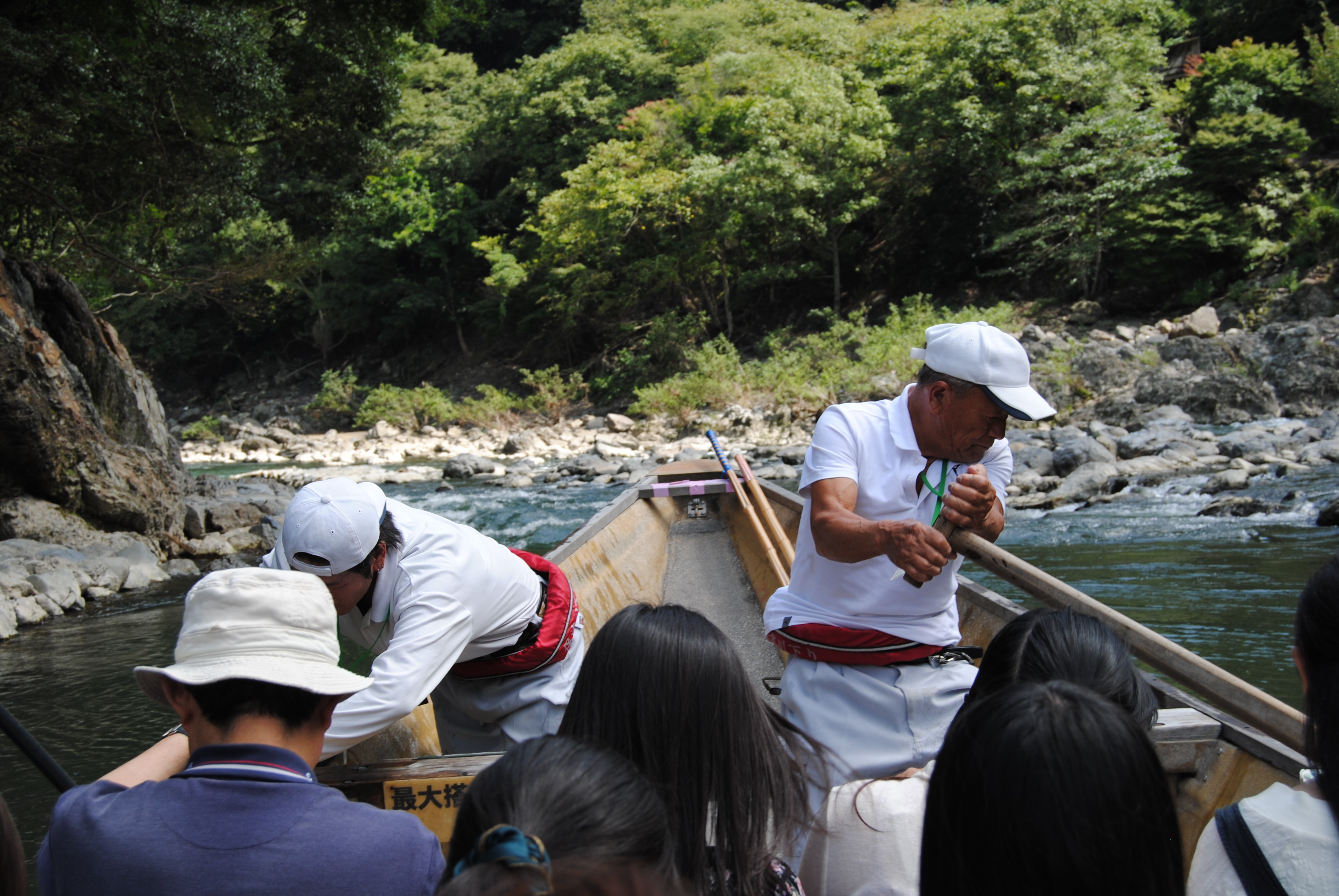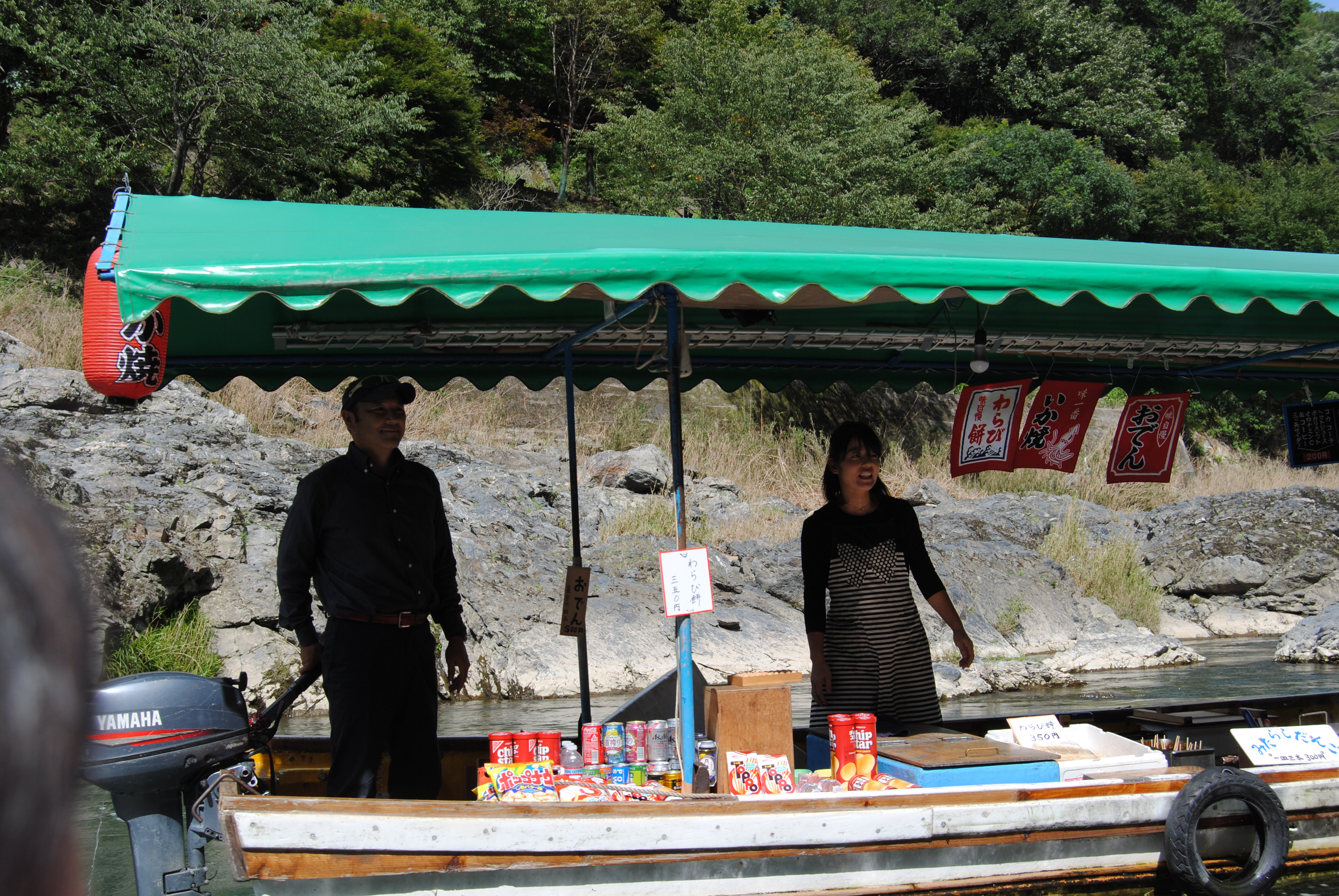 Von dort haben wir uns dann tatsächlich auf den Weg zum Rivercruise gemacht. Als gefühlte einzige Europäer haben wir uns in das Boot geworfen, um eine zweistündige Fahrt in Richtung Arashiyama zu machen. Das ganze beginnt ein Stückchen außerhalb von Kyoto, war uns aber eine Reise wert, denn die Natur um den Fluss war einfach wunderbar.