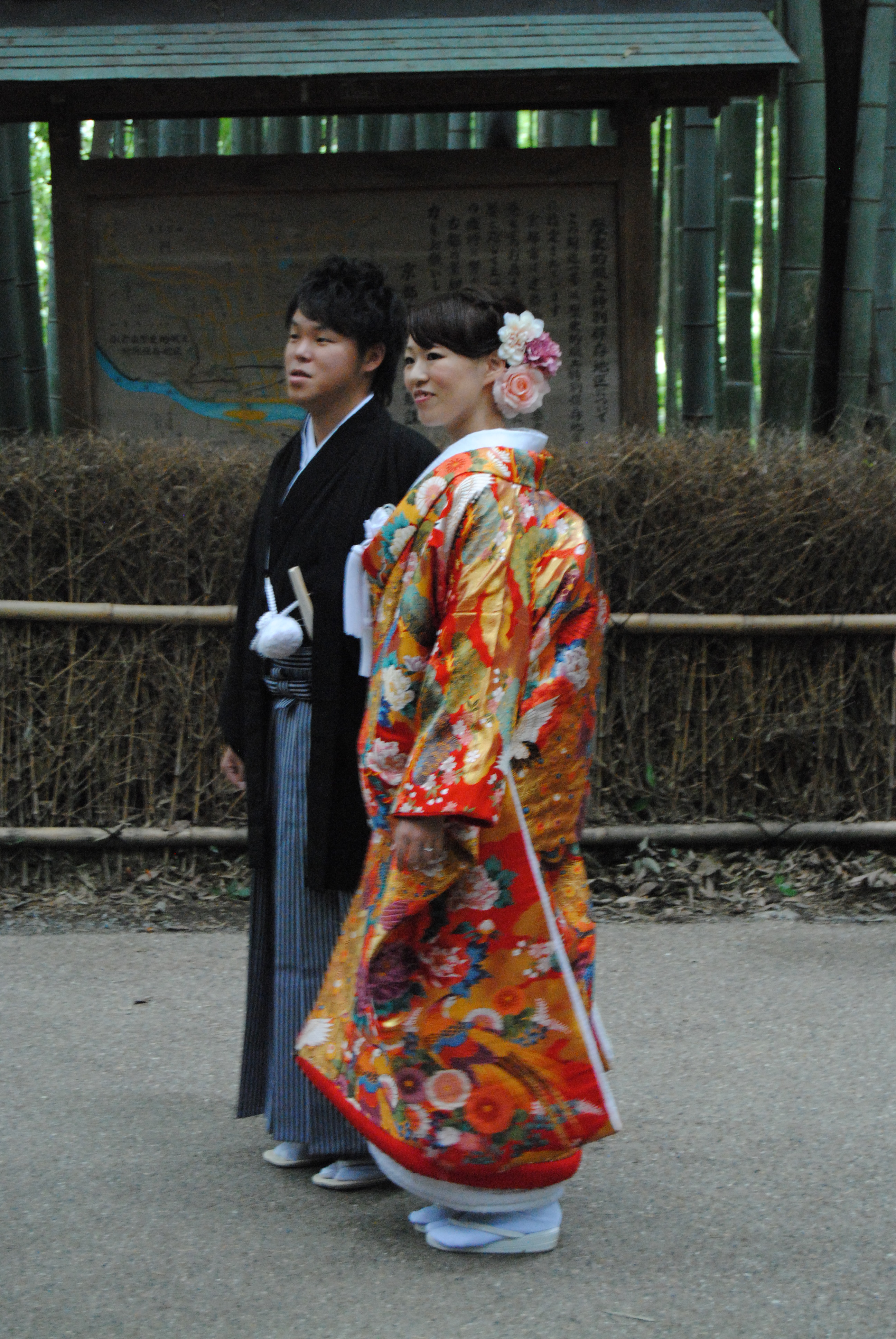 Auf dem Weg war auch ein Brautpaar beim Fotoshooting, was ich natürlich auch genutzt habe. 🙂 So schaut ein traditionelles Brautpaar in Japan aus.