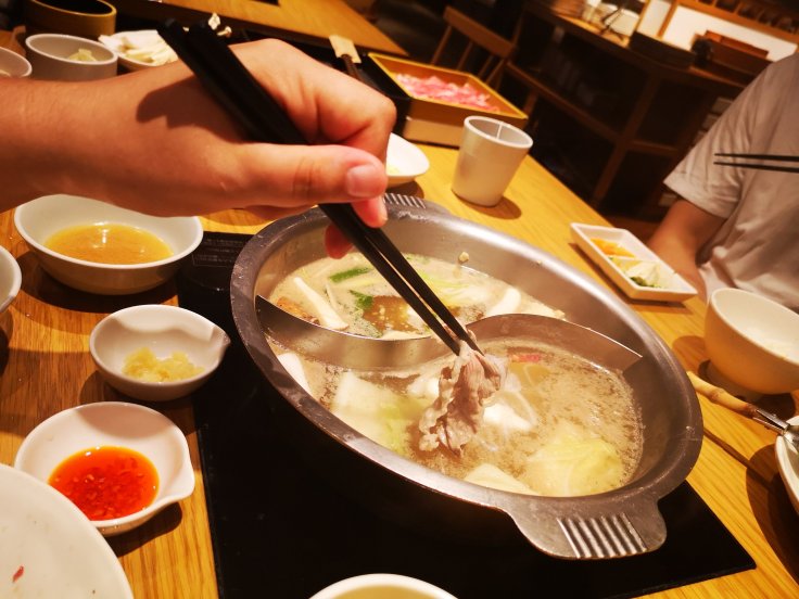 Nach dem gemütlichen Vormittag haben wir uns auf den Rückweg nach Shinjuku gemacht um dort Shabu-Shabu zu essen. Das haben wir schon vorher auf unserem Plan gehabt und ein schönes Restaurant schon im Vorhinein gegoogelt.