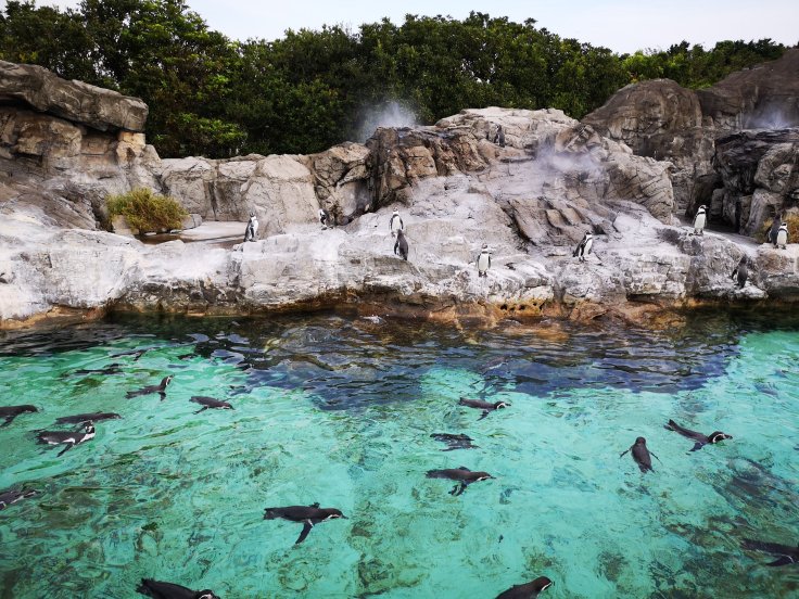 Frisch gestärkt und mit nur leichtem Suppenkoma sind wir in eine ganz andere Richtung aufgebrochen. Etwas außerhalb Tokios liegt das Sea Park Resort. Das ist ein kleiner Geheimtipp für Leute, die in Tokio schon viel gesehen haben. Der Eintritt kostet nur 700 Yen und ist somit viel billiger als manch anderes Aquarium. Es liegt direkt am Meer mit angrenzendem Park und schöner Aussicht.