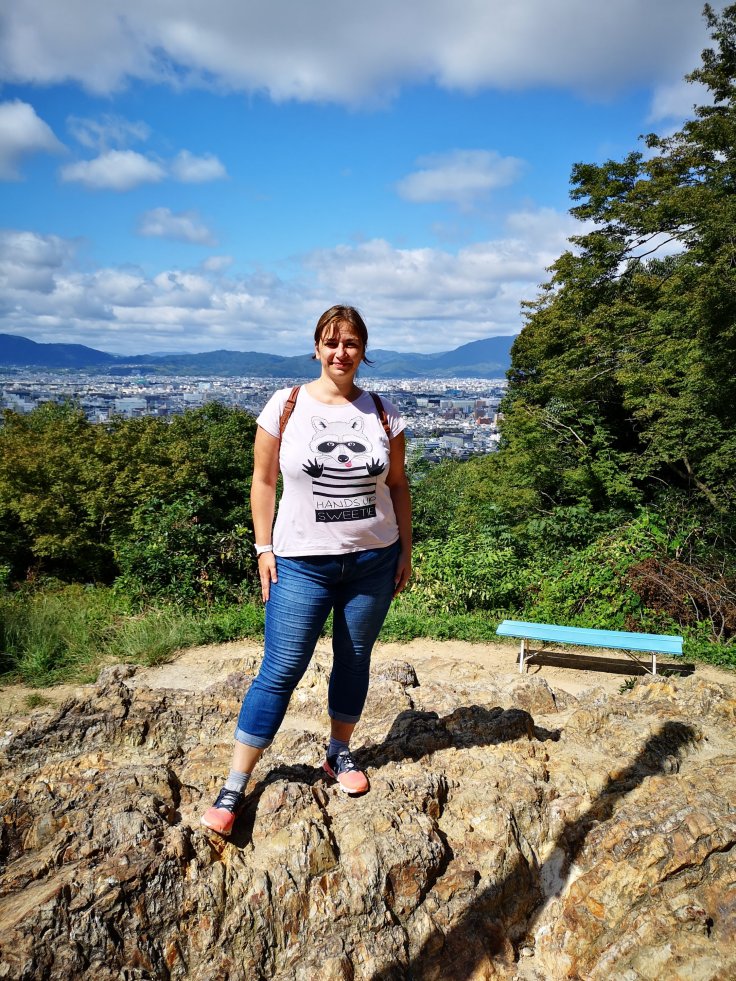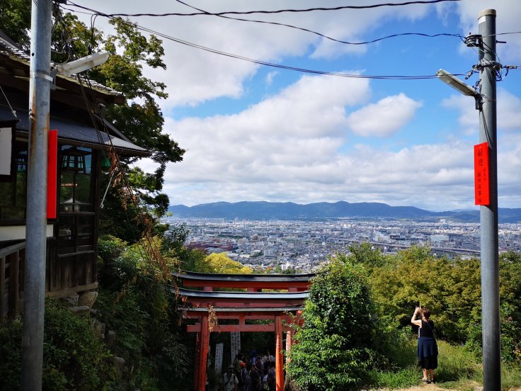 Nach einer langen Stiegentour hinauf kommt man zu einer Plattform, von der aus man über Kyoto blicken kann.