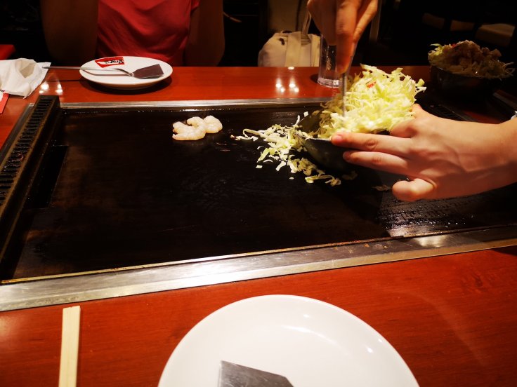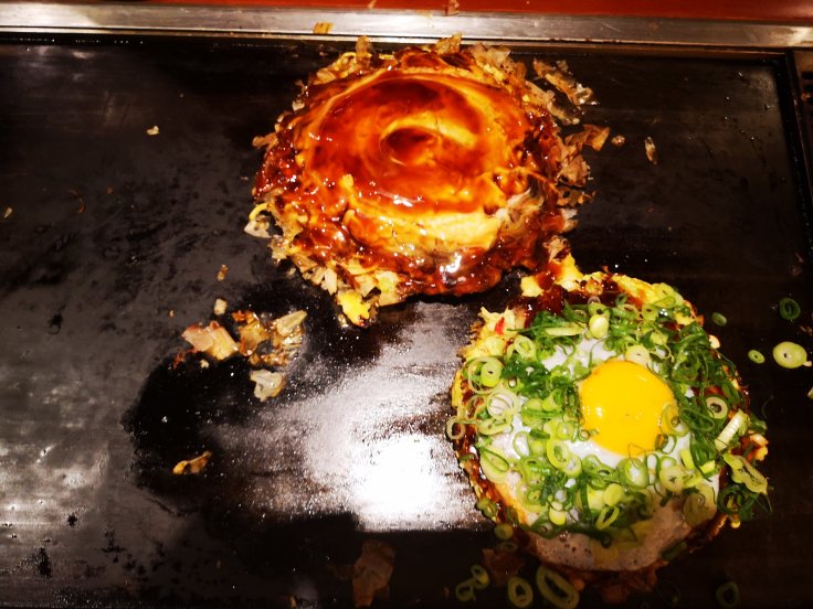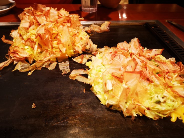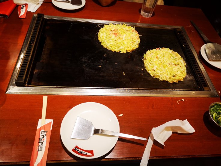 Von der Kyotostation ist der Inari leicht und in kurzer Zeit zu erreichen, deswegen waren wir gegen Mittag wieder in der Stadt und Isi und ich konnten ein großartiges Mittagessen genießen. Wir waren Okonomiyaki essen. Ein herrliches Gericht. Und in dem Lokal, in dem wir waren, wurde das Essen vor uns frisch zubereitet.