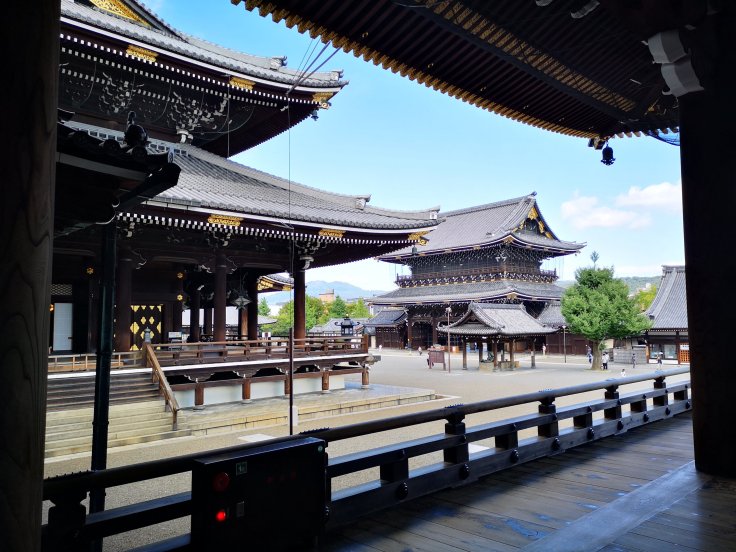 Direkt bei der Kyotostation ist eine Tempelanlage, die gratis zu besichtigen ist. Der Hogashi-Honganji ist ebenfalls einer der ältesten Holztempel der Welt. Leider durfte man innen keine Fotos machen, dort war er einfach wunderschön anzusehen.