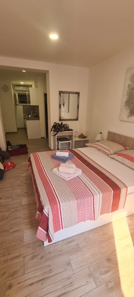 Unser Apartment in Makarska war eine komplett eingerichtete Wohnung mit einer kleinen Küche und einer Terrasse, die direkt im Erdgeschoss war. Ich muss sagen komfort war hier wirklich gegeben. Wir hatten einen Regentag und es war überhaupt kein Problem diesen im Zimmer bzw. auf unserer kleinen Terrasse zu verbringen.