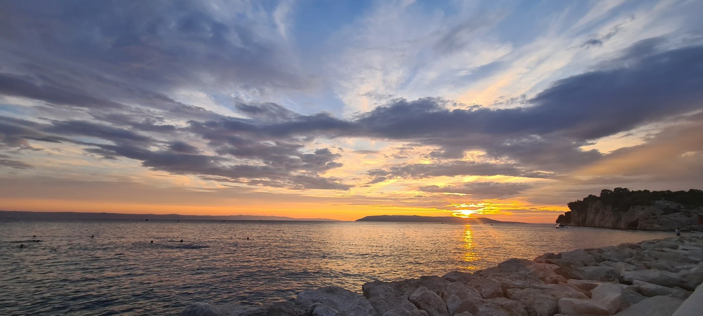 Mit voll gefülltem Bauch haben wir uns dann den Sonnenuntergang vom Strand aus angeschaut. Also die Bildkulisse was die Sonnenuntergänge angeht ist wirklich ein großer Gewinn für Makarska.