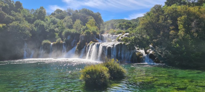 Nach nach den zwei Stationen, die eher zum Schwimmen und relaxen einluden, ging es nun an ein bischen aktiveres Ziel unserer Reise. Der Krka Nationalpark wurde uns von einigen Seiten schon empfohlen und das Hotel hat von den Bildern her dazu eingeladen länger zu bleiben und von dort aus Sibenik und Zadar mitzumachen. Aber es kam anders als man denkt…