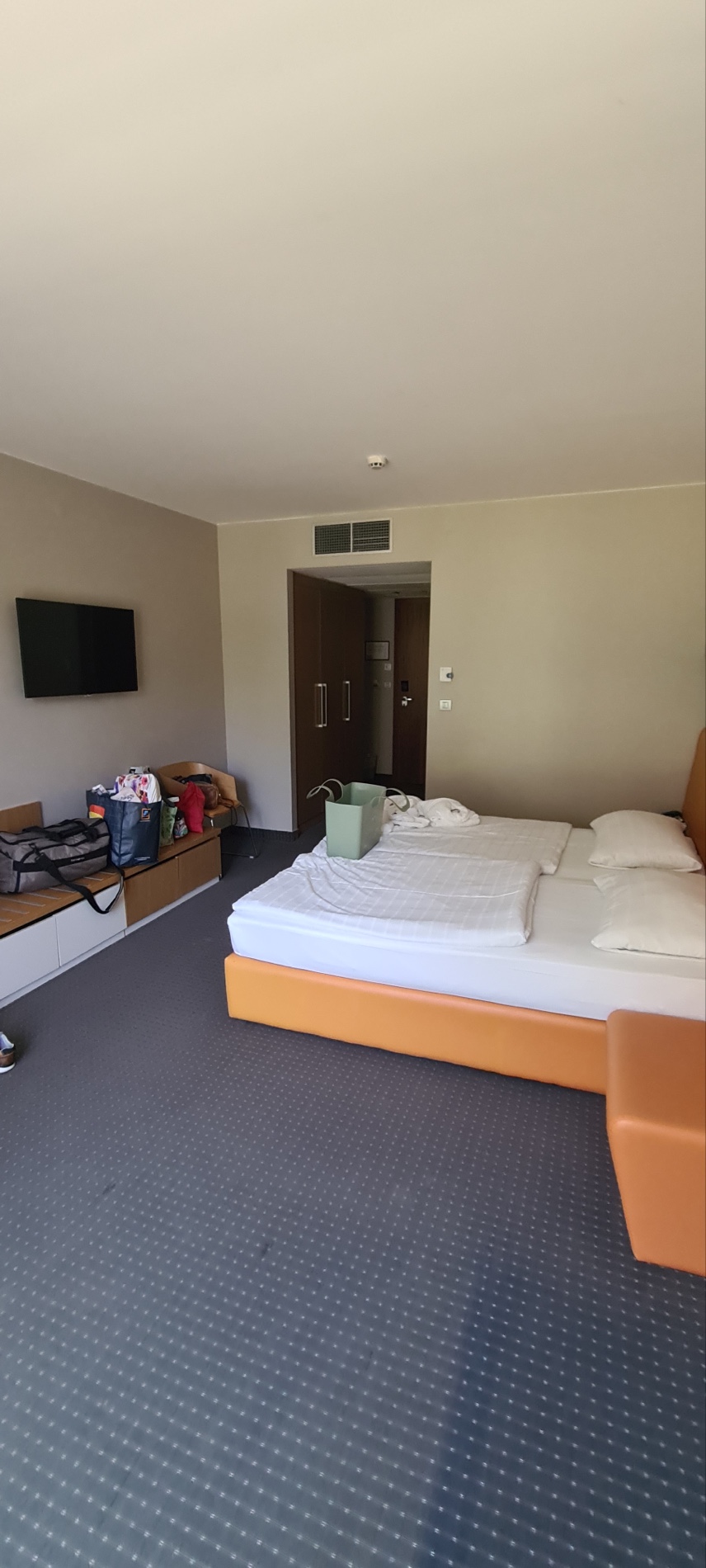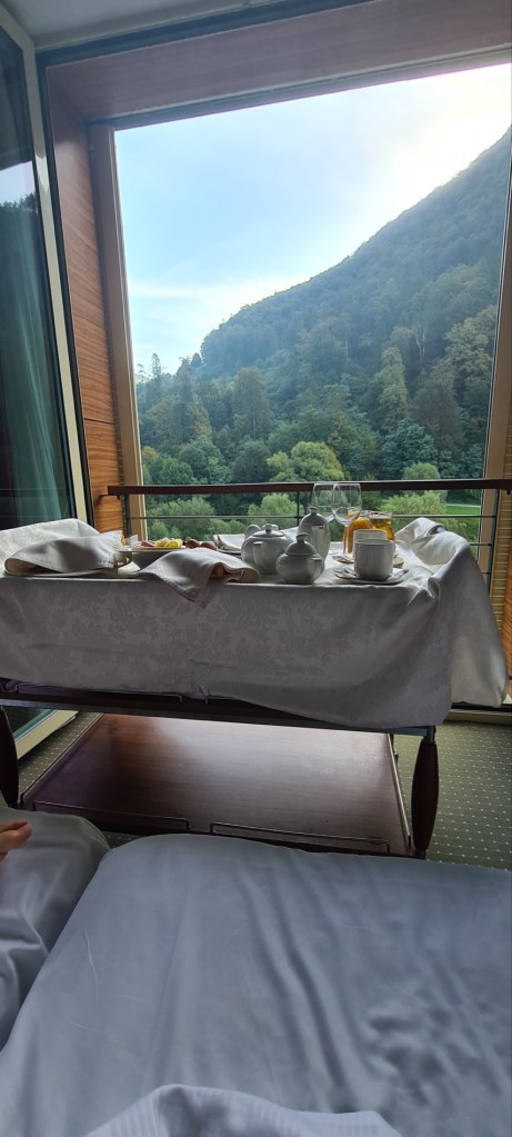 Der fast Abschluss der Reise war gekommen. (Ein kleiner Punkt sollte noch folgen) Und an diesem Ort ging es zu einer ganz anderen Art von Urlaub. Wandern, Städte und Strand hatten wir hinter uns. Jetzt fehlte uns noch eins: Thermenauszeit mit einem Romantikpaket (1xromantisches Abendessen in der Therme ; 1x romantisches Essen im Schloss Tabor ; 1x romantisches Bad ; 1x Biermassage ; 2x Frühstück – davon 1x Buffet und 1x aufs Zimmer) Wir waren sowas von bereit für diese Auszeit und sind voller Freude dort aufgetaucht und haben eingecheckt.