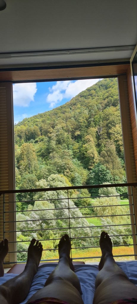 Die großen Fenster haben uns wirklich einen Traumblick beschert und wir haben uns schon fast dabei ertappt im Zimmer zu bleiben, da es hier viel heller und freundlicher war als in der Sauna.