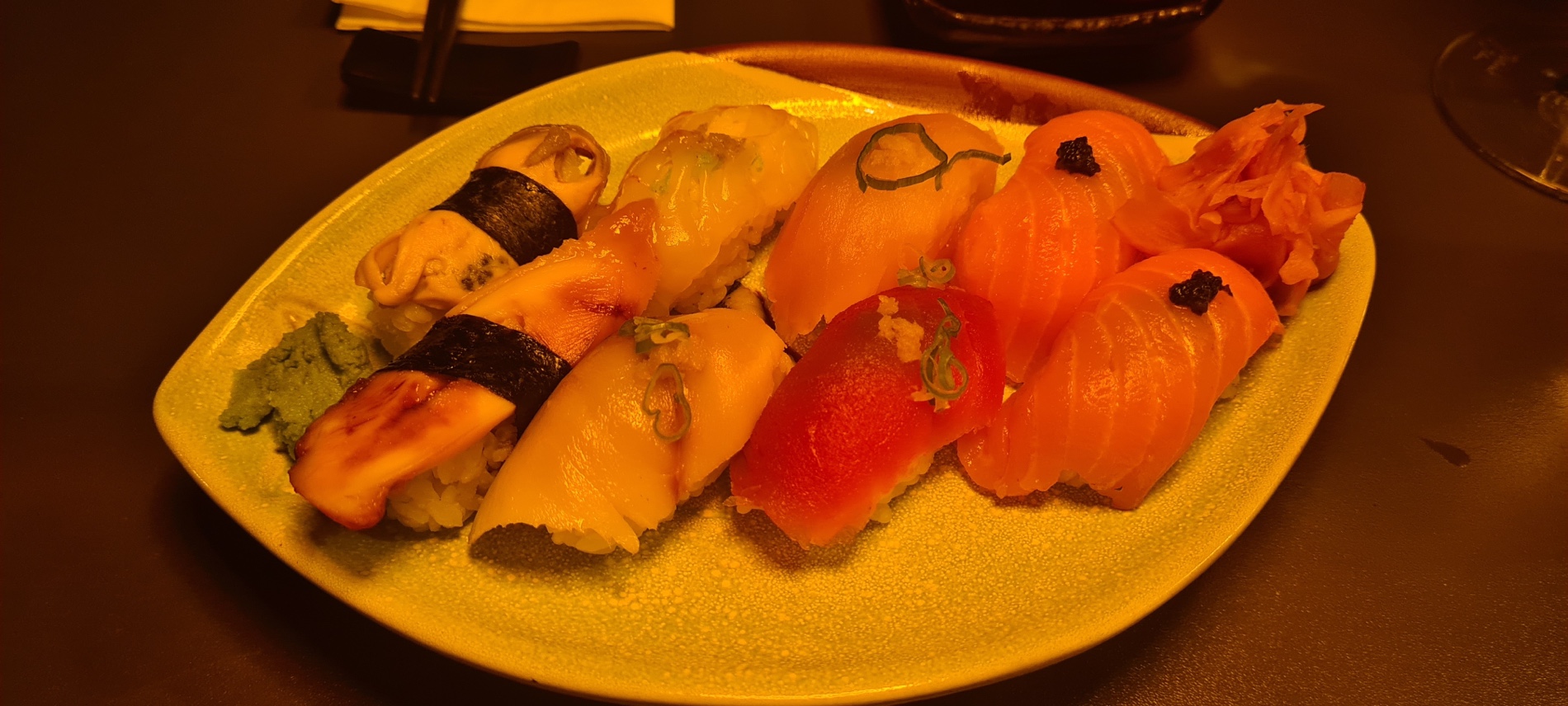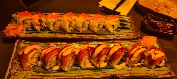 Diese Menüfolge (Ohne Vorspeise und Nachspeise) kostet 42 Euro pro Person. Ich finde bei der Menge an Sushi darf man da wirklich nichts sagen.