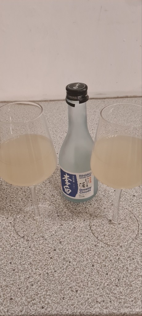 Wir haben uns da ein kleines Fläschchen mit nach Hause genommen und dann noch zum Abschluss genossen. (Es war unser Jahrestag, den wir nachgefeiert haben, da ich zu unserem eigentlich Jahrestag mit Corona im Bett gelegen bin….ja, mit dem Timing haben wirs manchmal wirklich nicht…) Also wenn ihr Sake grundsätzlich mögt und mal in den Genuss kommt, den Cloudy Sake irgendwo zu sehen, dann kostet den unbedingt!