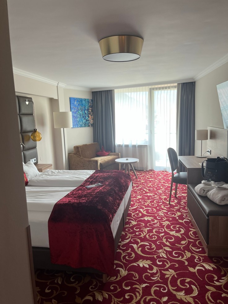 Soviel zu den Pro und Contras der Bereiche. Vom Hotel aus gibt es einen unterirdischen Gang in die Therme, aber es ist ein kleiner Fußmarsch bis dorthin. Macht uns aber natürlich nichts aus.