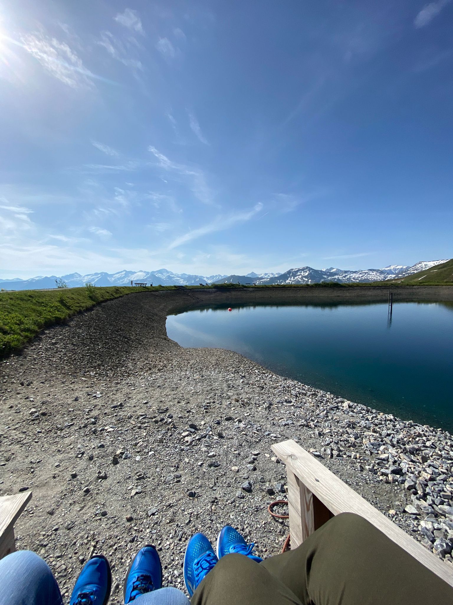 Oben angekommen waren wir hin und weg von dem Ausblick den man auf die umliegenden Berge hat. Wir haben uns schon vorher informiert, dass es am Gipfel eine kleine Seerunde gibt, die man gemütlich angeblich auch mit Kinderwagen gehen kann. Das haben wir dann auch als erstes gemacht.