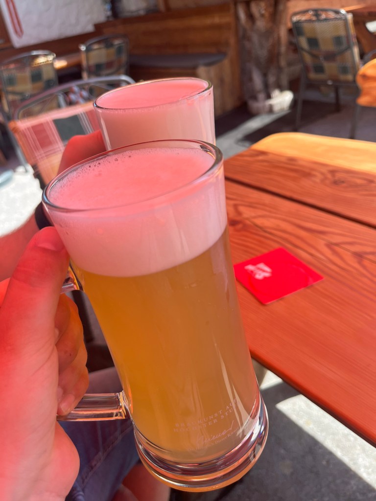 Ein netter Forstarbeiter hat uns dann auch noch einen schöneren Weg als den entlang der Straße genannt, und wir sind durch Wald und Wiese hinunter gestapft, bis wir zu einer Jausenstation gekommen sin….was soll man sagen, das Bier schmeckt nach einem 3 Stunden Hatsch am Besten!