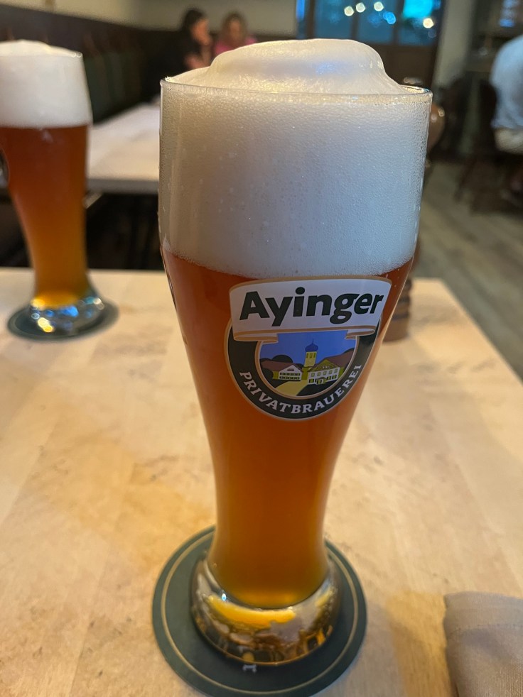 Wir sind dann doch noch ein bisschen durch den CSD gestiefelt, aber immer eher weg von den Menschenmassen und am Nachmittag haben wir beschlossen ins Hotel zu gehen und dann am Abend in ein Lokal, das in Hotelnähe war: Das Ayinger am Platzl. Wir ein gutes, bodenständiges Lokal mit lokaler Küche und gutem Bier. Ich kann nur empfehlen dorthin essen zu gehen. Wer allerdings mit Gelsen kämpft, wie ich es tue, dem würde ich raten drinnen zu sitzen ;). Es ist ein kleiner Bach in der Nähe und die Viecher sind dort leider überall unterwegs. Aber das tut dem Lokal und dem Essen auf keinen Fall schlecht. Es war wirklich herausragend gut.
