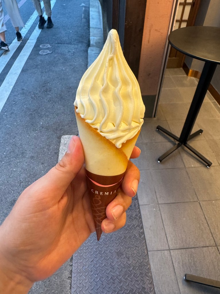 Danach gab es noch ein Cremia Eis – das in Japan momentan sehr beliebt ist. 🙂 war auch wirklich gut, schmeckt auch besser als so manch anderes Automateneis. Vor allem die Waffel war sehr gut.