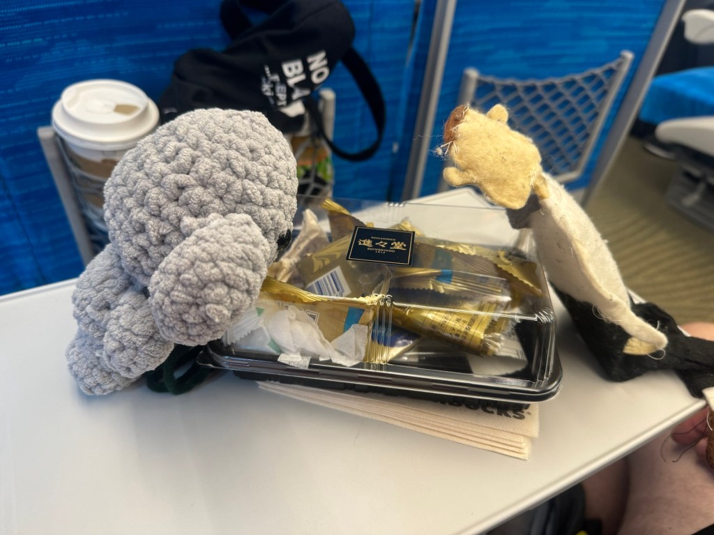 Aber im Shinkansen gab es erstmal Frühstück, ja auch für Kurti und Herrn Schmörzna!!