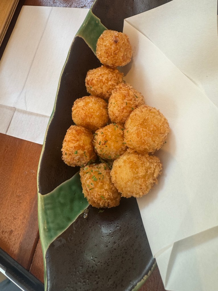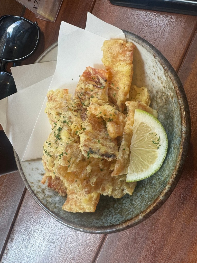 Das war wirklich herausragend gut. Als Vorspeise gab es noch Calamari fritti und Fischbällchen. Beides angeblich Hiroshima Special – genau so wie das Cola. Uns ist es ein bisschen so vorgekommen, als definiere sich Hiroshima auch über das Essen, denn die Tradition mit alten Geschäften, Restaurants, Tempeln, etc. Ist mit der Zerstörung komplett verloren gegangen.