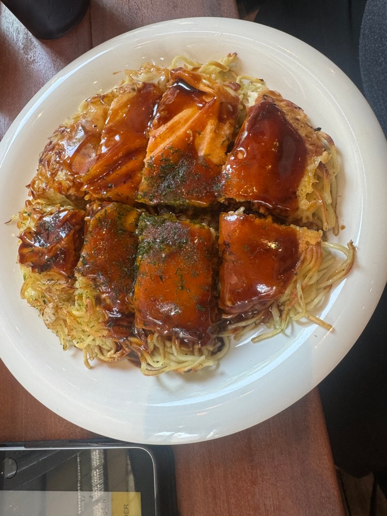 Wir haben uns dann noch ein bisschen in den Park begeben und den Vormittag verarbeitet bevor wir uns zum Mittagessen begeben haben. In Hiroshima gibt es nur eine Antwort auf was man essen gehen sollte: Okonomiyaki!! Und das wollten wir natürlich unbedingt machen.