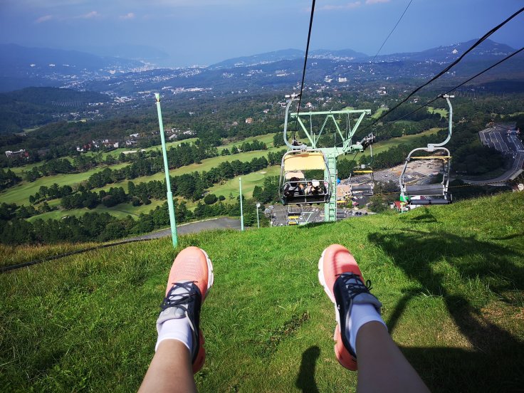 Auf den Mt Omuro gelangt man nur mittels Sessellift, was schade ist, aber auch das war ein Erlebnis. Vor allem der Rundweg am Berg ist einfach grandios. Das Wetter war leider nicht schön genug um den Fuji zu sehen, aber man hat trotzdem sehr weit blicken können.